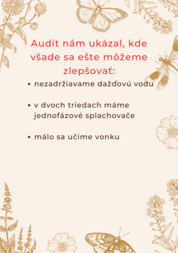 Sem sme si spísali výsledky auditu a naše ciele, ku ktorým sa chceme dopracovať jednotlivými aktivitami. Tieto sú tiež obsiahnuté v EAP.
